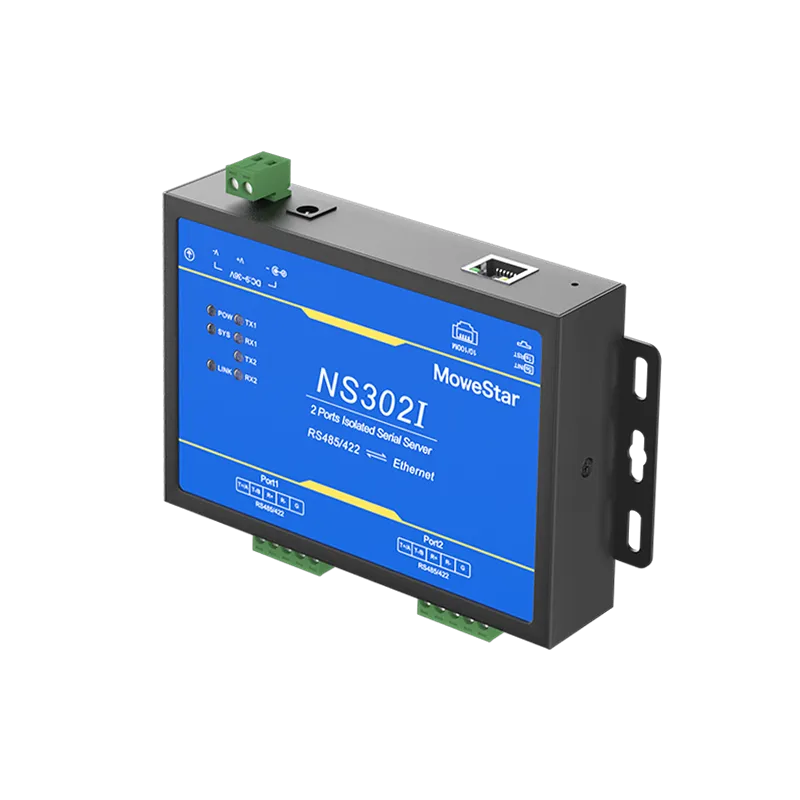 Industrial serial port server series products, mainly realize the data transmission between Ethernet and serial port (RS-232/RS-485/RS-422), it integrates the TCP/IP protocol stack, RS-232/RS-485/RS-422 devices that are not connected to the Internet can also be easily, flexibly and quickly connected to Ethernet. The series of products use high-performance ARM chip to ensure stable data transmission; Support a variety of working modes to meet different application requirements; Excellent anti-interference performance, suitable for harsh industrial environments.